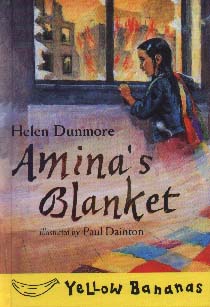 Josie is a daydreamer, but she becomes very interested when her class starts a new project. Each student learns to knit a square for a class blanket. When the squares are sewn together, the blanket will be mailed to someone in need who lives in a war-torn country. When the knitting is done, Josie volunteers to have her mom sew the squares together. Josie takes the squares home, and her mother helps her carefully finish the blanket that very night. When Josie finally goes to bed, her mother lets her sleep with the blanket just for that one night. Josie drifts off to sleep and dreams that, when she awakens, she is wrapped in the blanket in a very cold dark room. Josie is not alone; she finds a girl, Amina, her own age huddled in the corner of this unfamiliar room. Josie can hear the sounds of war outside the window. Amina explains that her mother went out to get wood for a fire before the shelling started, and, when it stops, she will be back. Josie shares the blanket with her new friend as they huddle together to keep warm. A shell explodes nearby starting a fire, and rescuers try to save the girls. As smoke begins to burn Josie's throat and eyes, her mother yanks open the bedroom curtains, and she is jolted awake. Josie's dream seems so real that she thinks that the blanket still smells like smoke, danger and war. That morning, Josie delivers the finished blanket to school, and her teacher packs it up and sends it away. When the class receives a letter and photo about their blanket, Josie is very excited. Suddenly Josie recognizes one of girls in the picture - it is Amina. Maybe Josie's adventure wasn't a dream after all.