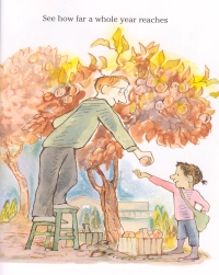 There are some books that children love to read, over and over and over. A Second is a Hiccup will join the ranks of most cherished poems. Both for its text and its illustrations, this book will stand the test of time no pun intended. The world of the child is a world of observing, questioning and comparing. Time is an abstract concept that needs patient, repeated explanation. Comparison is a way to make an insistent child understand how long it will take until a special day comes. Hazel Hutchins relates time to the concrete things in a young child's life in pleasant, fluid rhyming verse. As she writes about longer frames of time, the verses get longer because, of course, there is so much more that can happen in a week than an hour. The language is familiar, but she plays with it gently to make it more engaging ("a sprinkly shower"). Hutchins's choice of words gives the reader the opportunity to visualize the action; she inserts natural pauses that add surprise and humour to the content: Learn to count clean up to ten The comparisons to things in a childhood life are not simplistic; rather, they provoke thought, and judgment: Close your eyes and do not peek Her verses flow easily from one page to the next and are interpreted in an innovative, modern, if whimsical, style through the illustrations. The pen and watercolour illustrations by Kady MacDonald Denton express the joy of childhood playing, watching, participating, and growing. Childhood is a time of optimism, and that optimism is reflected in the quiet smiles on all the characters as they go about all their activities, ordinary and special. Children and adults alike will want to study these softly coloured paintings, looking for the extraordinary detail that lies under seemingly random lines and careless washes.