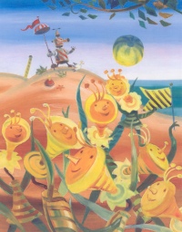 With this effort, Suomalainen pushes Wordsworth into a futuristic setting: a world of robots looking unhappy in their mechanistic surroundings. Chancing on a bobbing, weaving bed of daffodils on a beach, the central character, a candy-striped robot, finds his spirits uplifted. Flowers, insects and other creatures are all depicted with smiling faces, and their aspect causes all the sad-faced robots to cast off their gloom and dance. The pages of the book are full to bursting with colour and movement, and children would enjoy looking at these somewhat lopsided but happy pictures. However, cheerful as they are, they do not seem to go together with such formal verses as: