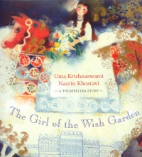 Based on the story of Hans Christian Andersen’s Thumbelina, Uma Krishnaswami writes an enchanting tale about a girl named Lina, who is, as in the traditional tale, the size of a thumb. Captured by a ravenous frog and kept in a pond, Lina sings a magical tune that compels the resident fish to release her. She finds a home in the forest but soon grows lonely “for the warmth of another living soul,” thereafter rooming with a friendly mouse. Still not satisfied with her lot in life, she sings a bewitching song to a rescued swallow which is near death. The swallow springs alive and carries her to a comforting place where “someone held a hand out to Lina.”