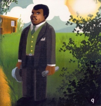 And the next page asks readers to colour a picture of Marcus, while, on p. 15, the reader is to “Connect the dotted lines and then use your crayons or markers to colour the spaces as marked by the letters showing.” Page 21 is a map of the world, and the text challenges readers: “Can you write in the names of the Continents?” Pages 22 and 23 ask the reader to match seven names (H.I.M. Haile Selassie I, Louise Bennet (Miss Lou), Harriet Tubman; Martin Luther King Jr., Ziggy Marley, Barrack Obama & Rosa Parks) with the correct photographs, a very challenging task for even the upper end of the book’s recommended audience of “4-8 year olds” [according to promotional materials accompanying the review copy]. While I assume I correctly identified them all (there is no answer key), it was only because I recognized seven of them and, by subtraction, could match the one name I didn’t know with the remaining photo. A Google search revealed that Louise Bennet (Miss Lou) is a Jamaican poet. The text on pages 33 and 34 asks, “Can you help me colour the picture?”, the picture consisting of a double-page spread of jungle animals. The next two pages, which are the book’s closing pages, again invite reader participation. This time the reader is given a colour code and invited to colour the flags of Jamaica and the U.N.I.A. Nowhere does Wint explain to her young readers that U.N.I.A stands for the United Negro Improvement Association nor does she directly connect the organization to Marcus Garvey.