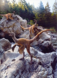 Pterosaur Trouble is an entertaining and informative story. While the book is written as a story for young readers, it is refreshing that the main characters are referred to only by species name, rather than being given human names. This approach keeps the focus on the action and the information being presented. The story, itself, contains some factual information about pterosaurs and several of the dinosaurs that inhabited Earth during the Late Cretaceous period. There is a page at the end of the story with more information on Quetzalcoatlus and on the inspiration for Pterosaur Trouble. A short bibliography for further reading on Quetzalcoatlus and Saurornitholestes would be useful for readers who want to learn more. The correct pronunciations of Quetzalcoatlus and Saurornitholestes are given at the end of the book; however, a pronunciation guide at the beginning of the story would help out parents and teachers who are reading the book out loud. Pterosaur Trouble has excellent illustrations. The lifelike illustrations reflect the recent research on dinosaurs and do not rely on old stereotypes. This can be seen in such aspects as the stance and front arms of the Tyrannosaurus rex, the feathers on the Saurornitholestes and the frills on the Triceratops. The illustrations are well balanced with the text, with a two page illustration for several small paragraphs of text. The text in each illustration is located such that important details of the illustration are not masked and the text block has enough contrast in the colour to stand out from the illustration while still making the text readable. The illustrations are detailed, and readers will enjoy looking at them with and without the text. At the same time, the illustrations will be easily visible when shown to small groups as well as single readers. Pterosaur Trouble is a well-written, wonderfully illustrated, and entertaining story that younger readers will enjoy both reading and having read to them. Highly Recommended. Daphne Hamilton-Nagorsen is a graduate of the School of Library, Archival and Information Studies at the University of British Columbia, Vancouver, BC.