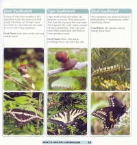 In the 14 pages in this section, readers encounter the caterpillars of 38 butterflies or moths. The entry for the Black Swallowtail, which is accompanied by photos of the Black Swallowtail in its caterpillar and adult stages, is typical of the information that is provided for each caterpillar.
