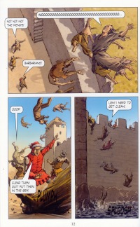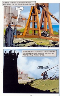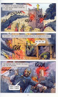 Knights may be somewhat disappointing to those readers who approach this book with the expectation that its contents were going to deal with such things as how one became a knight, the details of knights’ weapons and their participation in jousting tournaments. Though a bit of such subject matter is touched upon in the book’s “bread” portions, the graphic novel segments of the book portray knights in action as the “battle tanks” of their time. Specifically, the 1415 Battle of Agincourt, the 1429 Siege of Orleans and the 1485 Battle of Bosworth provide the examples of knights functioning in combat.