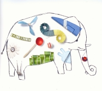 Usually elephants never forget...but Nancy the elephant has forgotten something very important. We have all fallen victim to similar situations – misplacing our glasses, a favourite toy, or forgetting what we needed upstairs – so we are immediately captivated by the little elephant’s efforts to retrieve her own lost memory. However, the real fun really begins as Nancy Knows shifts from this introductory predicament to a more artistic focus. Each page features whimsically sketched outlines of our elephant in a variety of endearing poses as she tries different strategies to recapture her memory. Collaged within her charming graphic penciled outlines are intricate Japanese-style paper sculptures designed to represent Nancy’s thoughts. Cybčle Young has fashioned these unique handmade sculptures as a fantastical means to delve into Nancy’s world. The reader can’t help but be amazed as a junk collection of paper punch-outs, rolled tubes, and torn remnants evolves into the recognizable forms of shoes, dresses, wheelbarrows and bicycles. We also learn more about Nancy’s interests and activities with each turn of the page. Some of these objects are easily recognizable, and others challenge the reader to guess what they might possibly be.