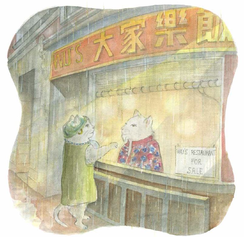Gypsy is a fortune-telling cat living in San Francisco in the 1920s. When the city elects a new mayor, he outlaws fortune-telling for money, and Gypsy suddenly finds herself out of work. Unable to charge for reading palms, crystal-gazing, or telling fortunes, Gypsy wanders the city, looking for a new job. But when she discovers a small Chinese restaurant about to go out of business, she teams up with the owner to bring in new customers by offering fortunes stuck inside cookies that are free with every meal. The text of this story is written mostly in rhyming couplets, with certain key scenes breaking from this pattern, such as when Gypsy first slips a fortune into the restaurant owner’s cookie, one that tells him not to sell his establishment. Since the majority of the text rhymes, however, the flow of the story has a nice bounce, making it well-suited for reading aloud. Stellings’ watercolour illustrations have an almost faded appearance that is perfect for Gypsy’s Fortune’s 1920s setting. The gentle lines and subdued colours give the story a quiet, reflective feel, with the use of soft greys, pinks, and yellows throughout the book creating a hazy quality in many of the illustrations. The effect is that Gypsy’s Fortune reads like a tale straight from someone’s family past, with the full-page pictures acting as vivid memories of a bygone era. There is also a bit of added fun with the illustrations in this book as on every page of text there is a watercolour fortune cookie painted in the bottom corner. Each cookie includes a traditional fortune, including sayings like “Patience–in time the grass becomes milk” and “Happiness is not perfect unless it is shared”. No one knows exactly where fortune cookies originated, but it is believed that early 20th century California is where this delightful and delicious trend began. Gypsy’s Fortune gives one possible explanation for how strict city laws may have created a new method of telling fortunes, and through its sweet account of events, Stellings’ tale offers readers a fascinating introduction to the mysterious history of the fortune cookie. Highly Recommended. Meredith Cleversey is a librarian in Cambridge, ON. She loves to read, write, and live in a world of pure imagination.