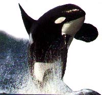 excerpt: A killer whale leaps high into the air while breaching in Alaskan waters. The whale may twist and turn before it falls back to the surface with a resounding splash. Look at the killer whale's broad paddle-shaped flippers. The size and shape of the flippers and the dorsal fin mark this specimen as a male.